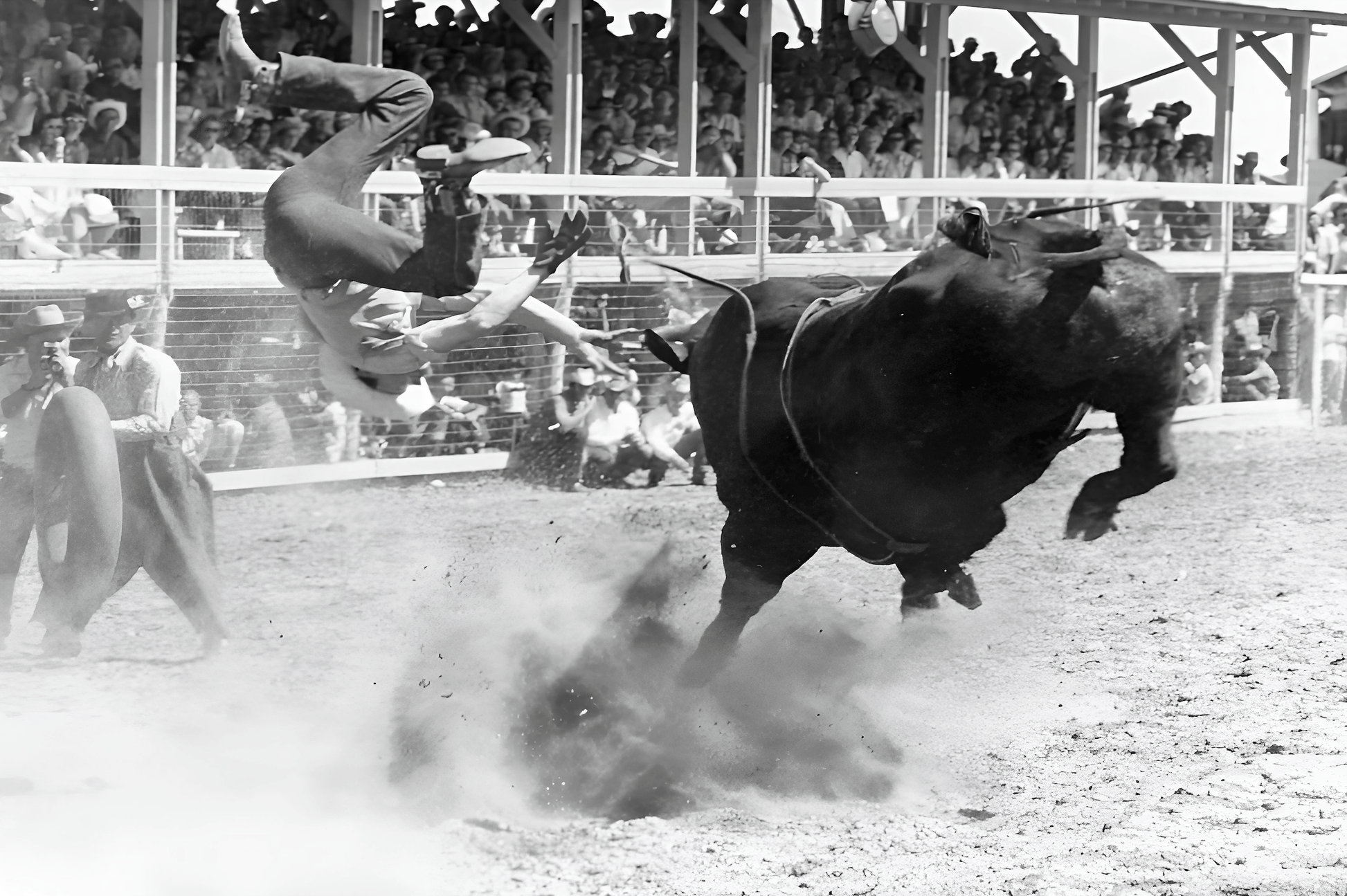 A self taught American photojournalist from Amarillo, Texas, Renshaw spent the 1940s–60s chasing dust and danger across the rodeo circuits of the Southwest. Known for freezing chaos mid-air, his black and white images captured the split second poetry between man and bull.